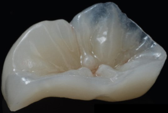 - Trám răng Onlay áp dụng cho trường hợp bị sâu, vỡ lỗ lớn, múi răng đã bị tổn thương. Miếng trám được đặt nằm bên trên răng và bao phủ lên múi răng.